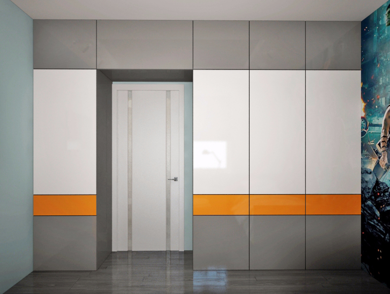 4. Комната для мальчика - подростка, 10,9м2. Здесь все совсем по взрослому. Минимализм в стиле и цвете, так как захотел сам мальчик. И только фотообои Марвелл напоминают о том, что здесь живет ребенок)