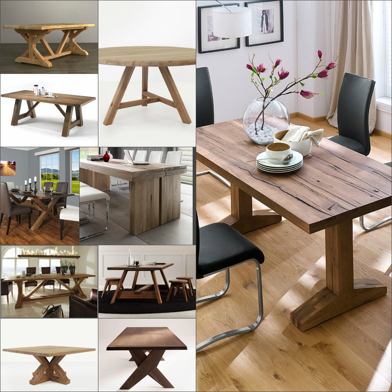 Здравствуйте. Могу предложить долговечные красивые экологичные столы из массива дерева. Делаем на заказ - сами выбираете массив, цвет, технику окрашивания, размеры! прикрепила фото слева направо бук, ясень, дуб. на цвет не обращайте внимание, для примера покрыто "венге" брашированная поверхность.