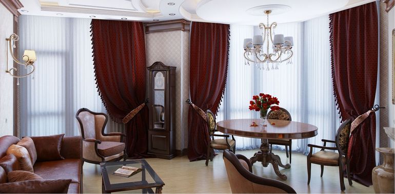 Выбранный цвет очень хорошо будет смотреться в вашей светлой комнате. Добавит камерности и уюта. Фактура ткани кажется простоватой, может есть какой нибудь компаньон? Фото для примера с классикой..