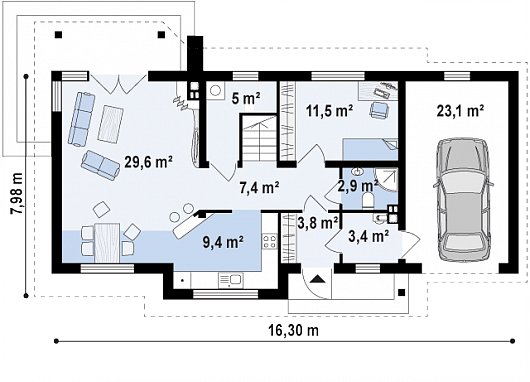 Гараж в доме - не удобно, и дорого, лучше отдельно и сразу на две машины или гараж на одну с навесом для второй. В проектах Z500 мансарды низкие, Комнаты которые по 10 и 12 метров на втором этаже из-за этого могут выглядеть в живую как вагон. Еще лестничное пространство в проекте надо проверить, часто ставят лестницы очень неудобные. Проект хороший)))