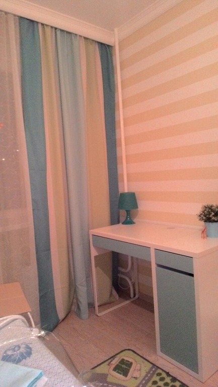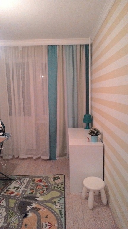 Вот повесила одну штору из своей спальни.Но это бирюза насыщенная!Но не повесишь ведь бирюзовые по всей квартире))))