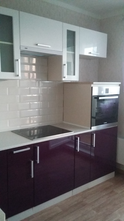 Красивая кухня !!!! Светлая и цвета приятные !!! Не волнуйтесь , с глянца все очень быстро отмывается тряпочкой с мускулом ) зато как он смотрится !