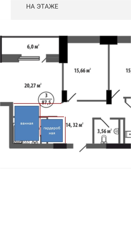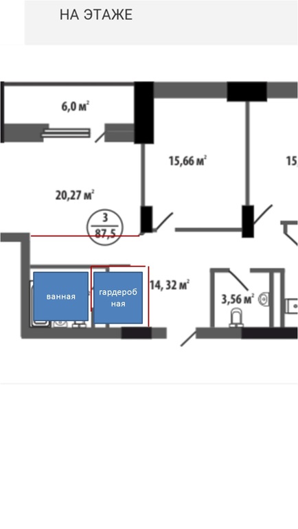 Можно немного поменять планировку, чтобы перенести вход в ванную и разместить гардеробную