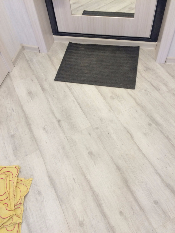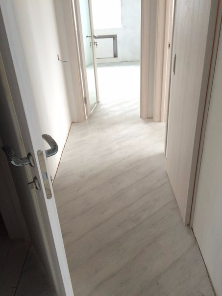 Плитку не стали стелить, хотели избежать порожков. Как будет служить в прихожей ламинат, не знаю, вот и посмотрим.