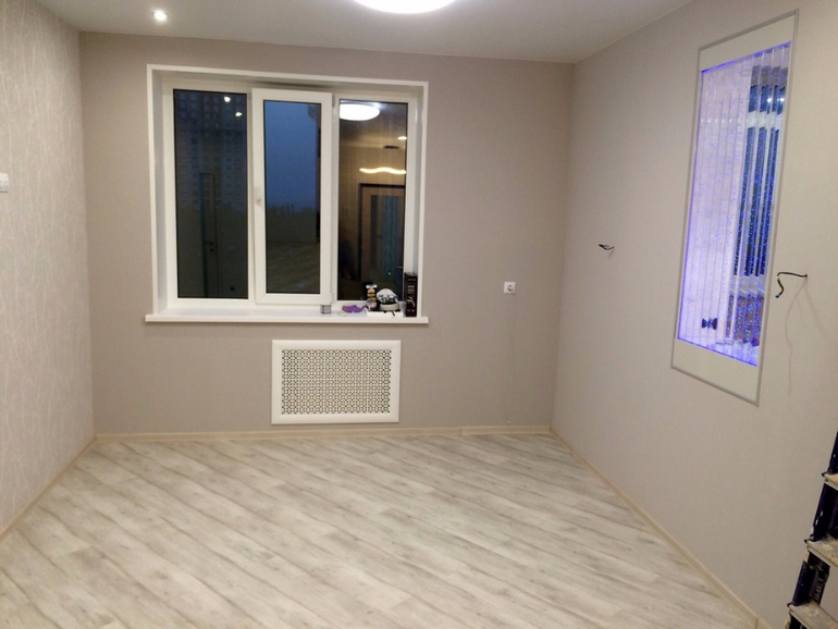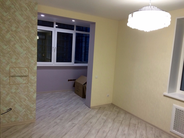 Тут планируется стеклянная дверь на балкон. Пока без нее. Балкон покрашен краской.