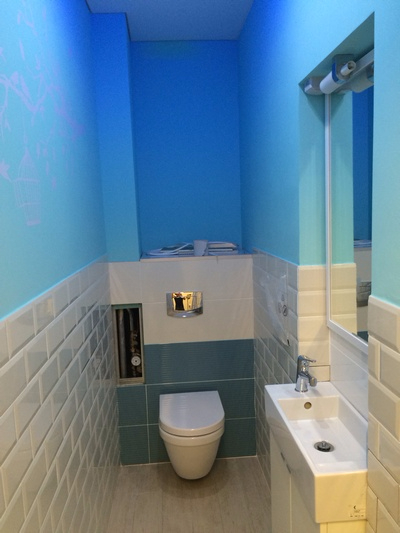 Не понравилось, что дизайнер у нас была вялая. Тупо нарисовала картинку по нашим неопытным хотелкам, никаких решений сама не предложила, не советовала, не активничала, не настаивала на целесообразности чего либо. Просто налепила дорогие материалы (обои, плитку, всякие вставки стеклянные).