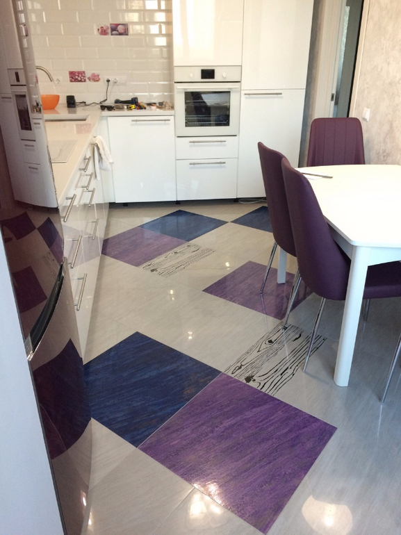 По первой идее, эта плитка должна была идти из кухни наискосок к прихожей. Но плитка по цене весьма негуманная, и заход на прихожую корячился еще плюс 50 тыр…