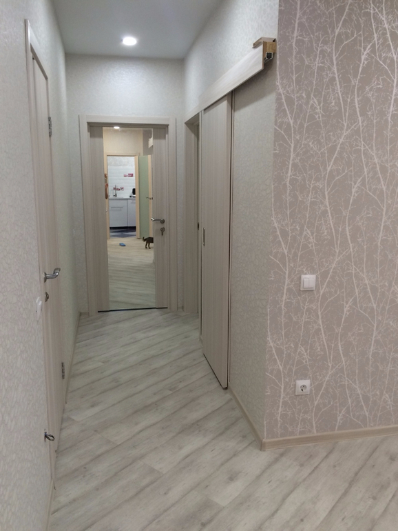 Также было согласовано перенесение стенки ванной в сторону прихожей, для увеличения ее площади, и сразу убрали (не строили) стенку зала. Не все стены удалось «убрать», были несущие, поэтому перекроить пространство поинтереснее не получилось. Несущие стены не трогали.И хотели сделать два кабинета (мужу и мне мастерскую), не хотели изначально соединять кухню с залом, нужна была гардеробная, чтобы избежать шкафов, и всегда хотели два санузла.