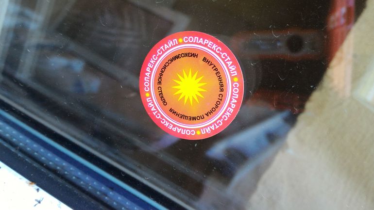 Добрый день. Наклейка ВСЕГДА клеется из помещения. А стекло с энерго напылением-первое стекло с помещения. Как тепловое заркало отталкивает тепло в сторону источника тепла(обратно в дом). Звоните и просите, чтобы перевернули с/п. Это важно