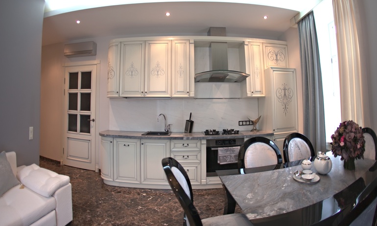 у вас ремонт нейтральный я бы сделала кухню в таком цвете только как раз столешницу делала бы черную
