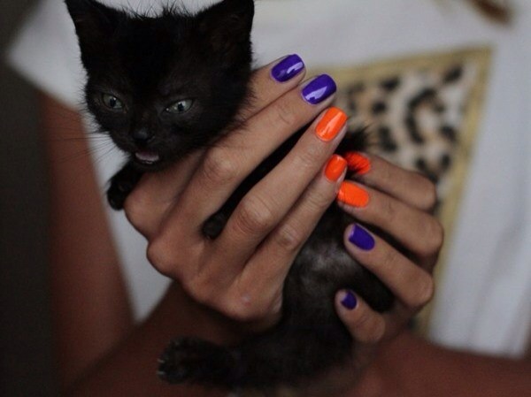 Как вариант я бы предложила сделать синюю стену за кухней а место фартука закрыть прозрачным стеклом. А маникюр как пример сочетания цветов:) а котёнок- Ваш черный пол