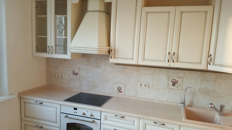 Делаем кухню. Хочу современную классику с элементами прованса. Кухню выбрала. Склоняюсь к кремовому /ванильному цвету.Кухня матовая Ещё есть вариант фисташковый низ. Не можем определиться с плиткой. Муж тащится от зеленой, мне тоже нравится,но ближе с розочками и горшочками. Как вам кажется,что лучше.