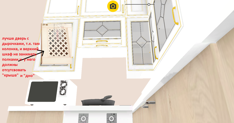 Не смотрите на цветовую гамму и в размерах могла ошибиться, я НЕ дизайнер, и даже НЕ любитель, просто смотрите идею расстановки мебели, если не нравятся открывающиеся дверцы, всегда можно использовать выкатные ящики. Совсем не обязательно делать стекло, у моих соседей все дверцы в дырочку, но где нет колонки + тонкое стекло, таким образом спрятали колонку и вроде фасады все одинаковые, и там где не колонка вроде не пылится. Вместо картины можно телек повесить, или полки для книг.