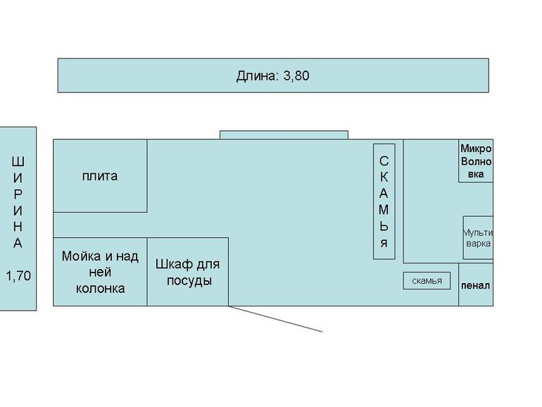Девочки, всем привет. Обращаюсь с просьбой и за советом. Дело в том, что у нас ну ооочень маленькая кухня. А людей в семье целых 5: 2 взрослых и 3 детей. Ее размеры: в ширину 1,66 и в длину 3,80. Окно напротив входной двери. Сама дверь посередине. Визуально это делит кухню на две половинки. На одной половине у меня плита, мойка и шкаф для посуды. Ах да, еще колонка там же.