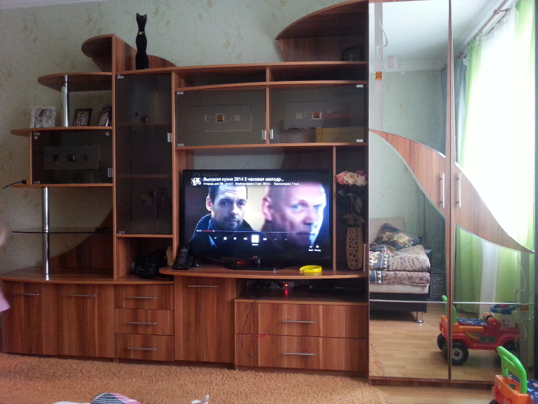 Оформление окна еще не окончательное - со временем обновлю тюль. А внизу под телевизором к зиме появится электрокамин)))