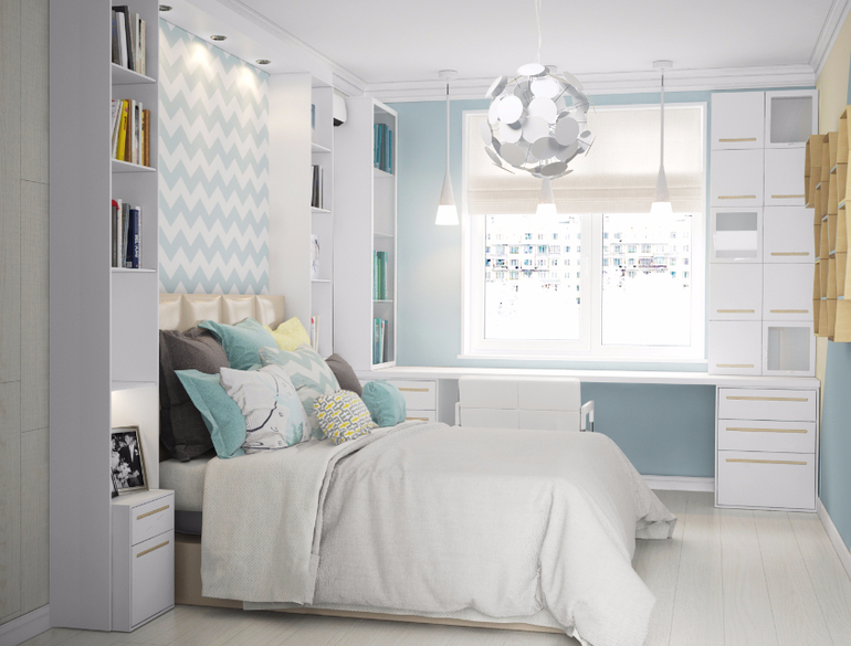 И я хочу стену, где вытяжка и фартук сделать кабанчиком, но уложить из 2-х цветов елочкой. Фото есть, но только на мобильном, поэтому для понимания, бросаю просто фото понравившейся спальни с обоями зигзаг. Плитка будет бела\ и серая керама марацци, тоже ложенная елочкой))