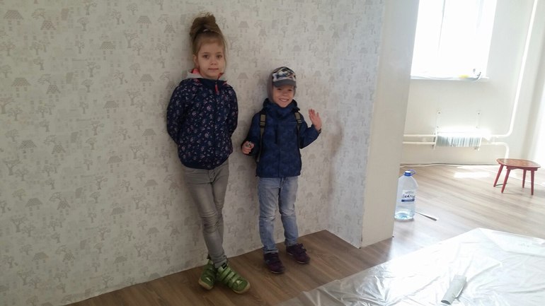 Вот эти обои. Но мы брали однотонные: голубые и зеленые. Для них нужны ровные стены, иначе будут очень видны неровности.