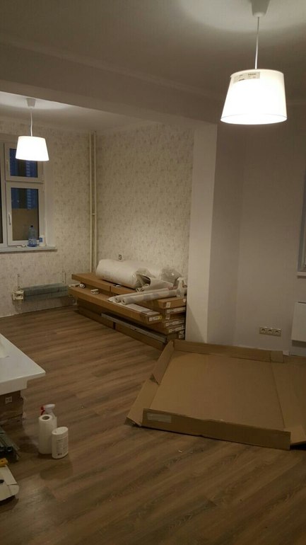 А где Вы такие обои нашли. Я бы одну стену обклеила, а остальные однородными. А то в глазах рябить будет