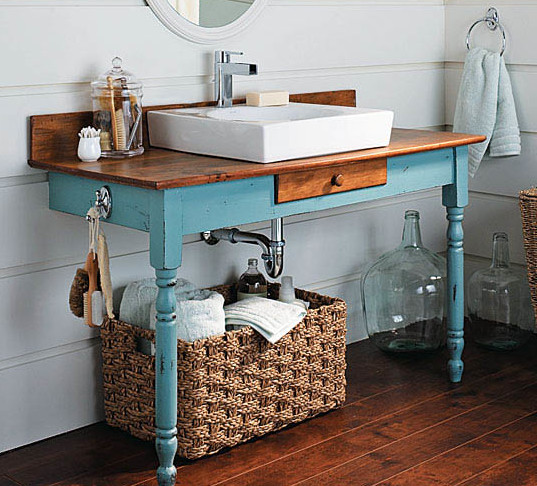 Интерьерное решение ванной комнатыДевочки, подскажите, в каком стиле мебель подобрать для ванной комнаты? Плитка как на фото. Нужна тумба и пенал, в каком виде не представляю...