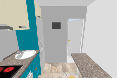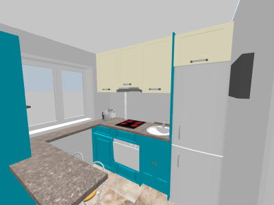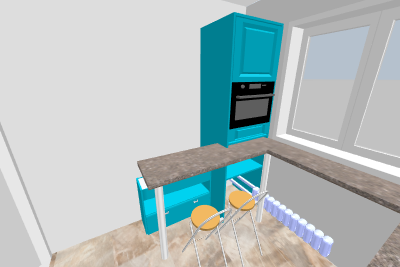 У меня слева там где у вас холодильник стоит шкаф высокий с духовкой на уровне глаз (открывается в сторону кухни, как у вас холодильник). Справа вдоль стены справа налево: холодильник, раковина, узкая варочная панель (под ней компактная посудомойка), шкафчик. И одна сплошная столешница: справа вдоль всей рабочей поверхности, подоконник тоже из нее, а слева она превращается в узкий "барный" стол на одной ножке: с узкими же высокими стульчиками чтобы можно было друг напротив друга сидеть. Одному удобно и напротив подоконника сидеть кушать смотреть в окно )