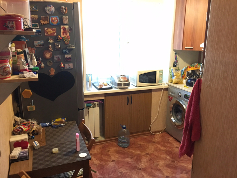 . Вот выйду на работу скоро и будем ванную с туалетом объединять и делать ремонт на кухне. Я хочу кухню с залом соединить (у вас за стеной где холодильник.