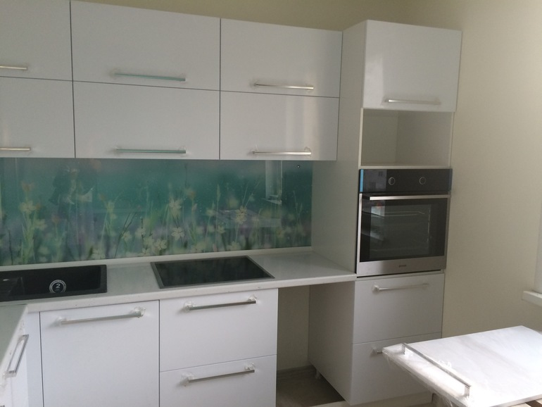 Ещё не закончена(фото с установки)если вычесть кран и Мойку как раз около 70000 получится вместе с фартуком из стекла 😊