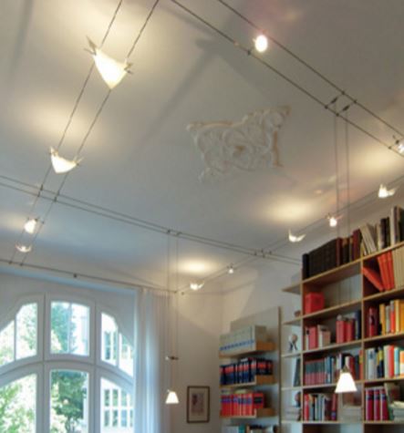 Совершенно необязательно тянуть трек. Или натягивать потолок. Можно поставить вместо люстры светильник вот такого плана: