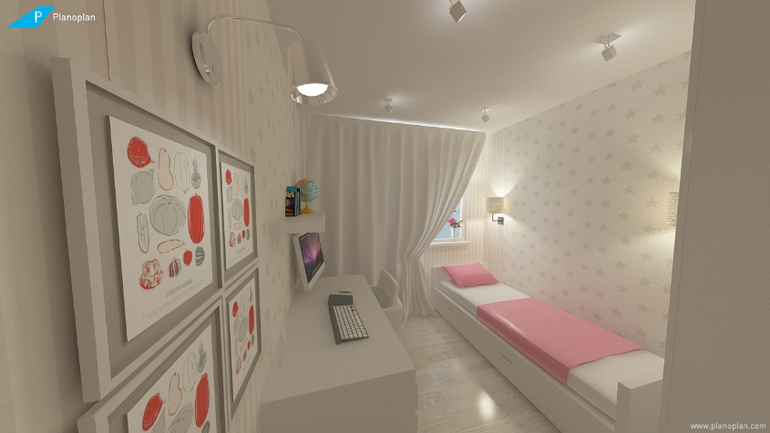 Шкаф будет немного другой, в планировщике не нашлось нужного. И наверно его "зашьем", чтобы стоял ровненько. Раздумываю, может сделать половину зеркальной? ведь девочке это тоже не маловажно.