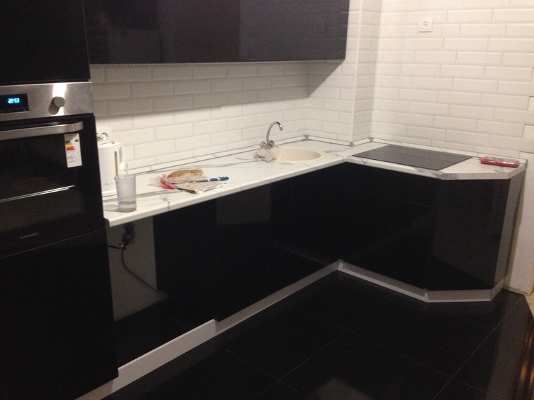 Забрали деньги и пошли смотреть кухни в другие салоны. И остановились на чёрной глянцевой.