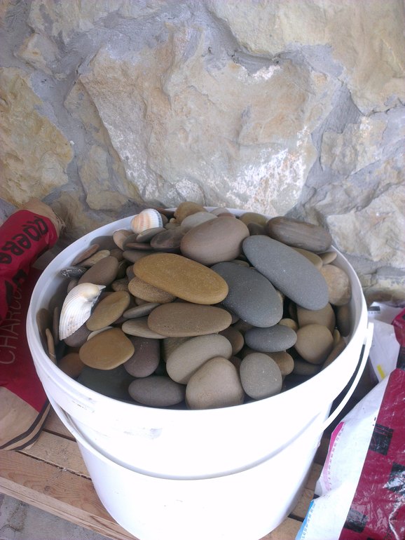 На сетку хочу, как временный момент, чтобы строитель время на это не терял. Да и не сделает он хорошо, т.к. там подбирать нужно камни. Галька то разномастная. По метру ему сделаю, а потом думаю, что на плиточный клей или может еще какой-то ее на стену влепить и выступивший клей пройти кисточкой или палочкой вокруг камней, чтобы получилось что-то типа рамки для каждого камня. Тогда по идее не должно вывалиться. Затирка быстро сохнет.