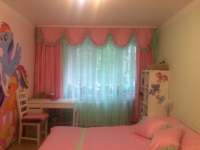 А мне пони понравились. Но! Шторы и покрывало на кровати для бабули. И не диван для дочки, а кровать. Но это только мое мнение.
