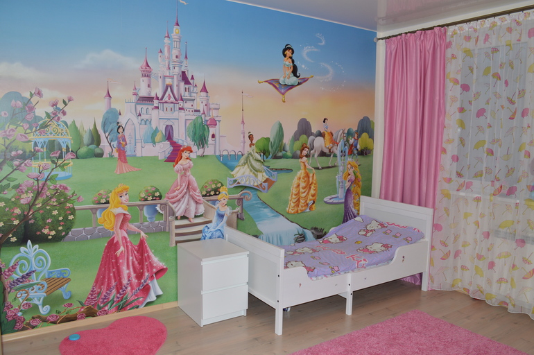 Прямо как у нас,в се в розовом. Один минус - быстро надоест и вам ипринцессе. Моя уже просит комнату в другном стиле)) Но год-два еще будет тут жить и радоваться своим принцессам.. Но пока ребенок счастлив, это того стоило! По себе знаю))