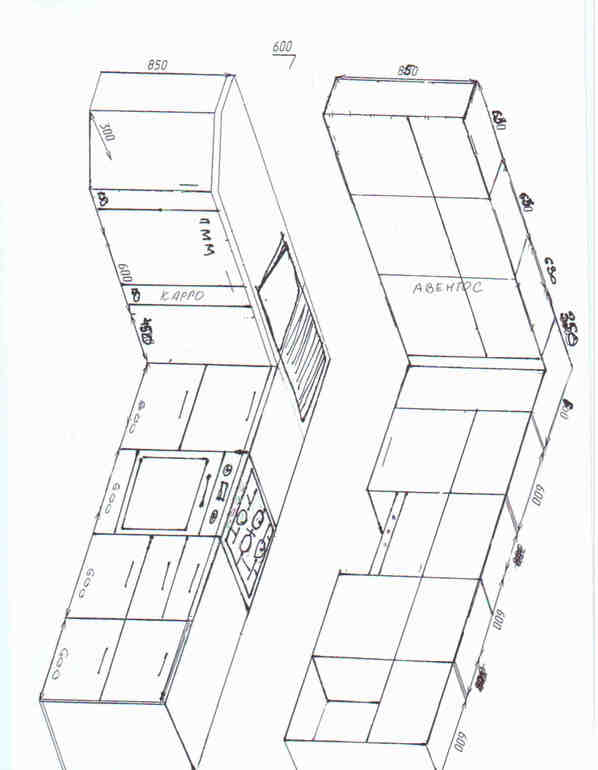 Добрый день, могу нарисовать в программе Вам, то что шкафы у Вас идут с хвостиком размер 630, это плохо, будет нестандарт за который надо переплачивать, можно сделать интересней, напишите почту в личку.