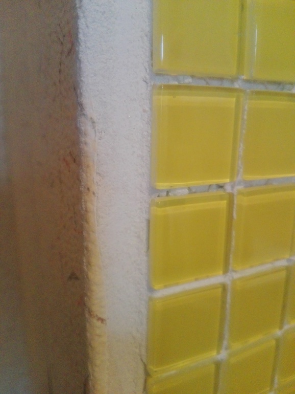 Нам рабочие говорили купить уголок, но все, что я видела смотрятся отвратно, попросила аккуратно замазать затиркой, пока все держится (2 года прошло), но у нас плитка, не мозаика