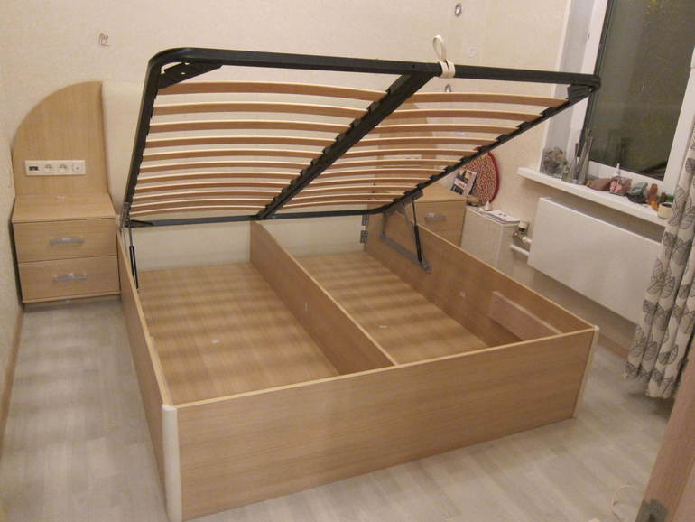 Может тогда подойдет Вам вариант единой подложки под Весь матрас из ЛДСП с опорой на весь периметр и пустить еще по центру ребро жесткости от изножья к изголовью. Фото прилагаю. Получается довольно неплохая опорная конструкция. Клиент в данном случае остался вполне доволен. Мы так часто делаем. Можно и без механизма, но место будет труднодоступным или вообще неиспользуемым. Жалко.