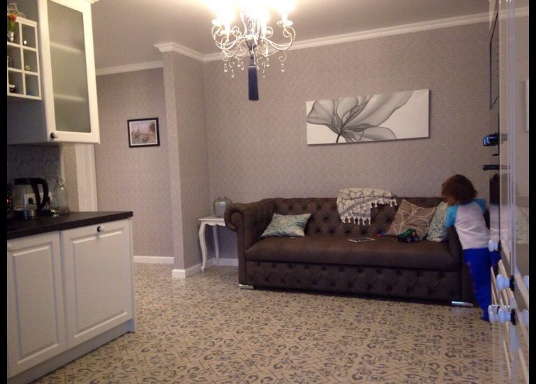 Когда купили эту квартиру-в ней была почти обычная кухня 12 м и длинный коридор, мною решено было ломать и строить, и на выходе мы получили почти гостиную ок 25 кв м. Покажу , что есть сейчас, очень не хватает картин и декоративных мелочей на стенах, нет посудного шкафа с другой стороны дивана, надеюсь в скором времени появятся.