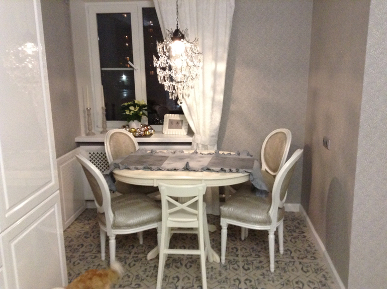 Везде блюм, холодильник встроенный, пол теплый;отдельно о столовой групппе-они куплены в разных местах