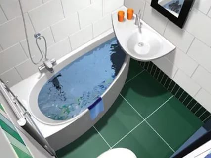 у нас ванная 170х170, задача была поставить ванную, раковину и стиралку так, чтобы еще было достаточно места. Мы поставили угловую ванную 80х140, полноценную угловую раковину (муж категорически был против как на картинке) и стиральную машину.