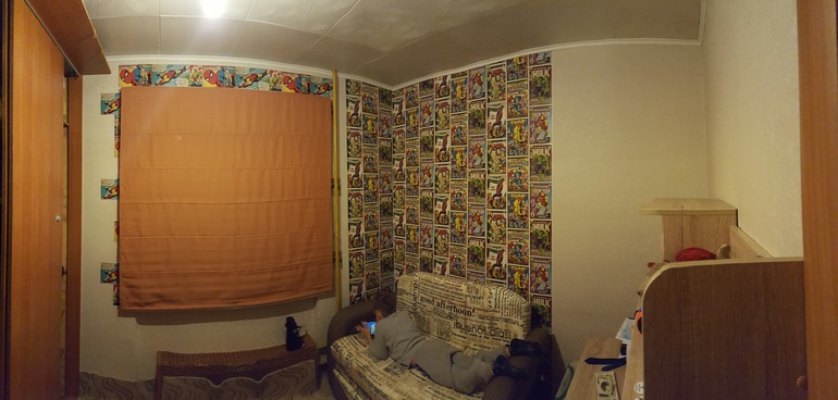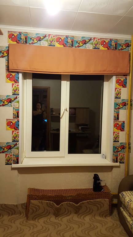 Видела как то интерьер с героями Марвел. Только там не стены сплошняком были обклеяны, а сделаны постеры в рамках. Вам надо было идти по такому же принципу. Смотрелось бы гораздо лучше и сыну бы угодили