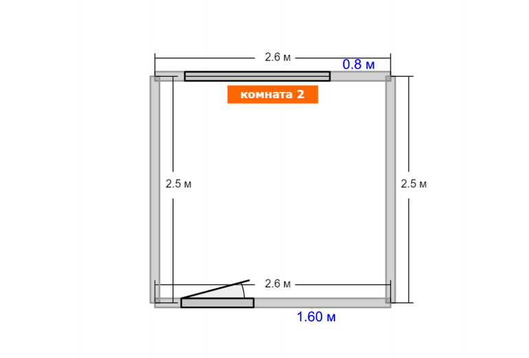 ширина стены до двери 160 дальше дверь, а длина комнаты до окна 250