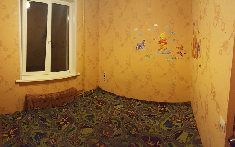 Было лучше даже...((( штора..напольное задраное покрытие...куски обоев в 6 метровой комнате..рабочее место спиной к источнику света....что за сетка под окном?батарея такая?жуть.