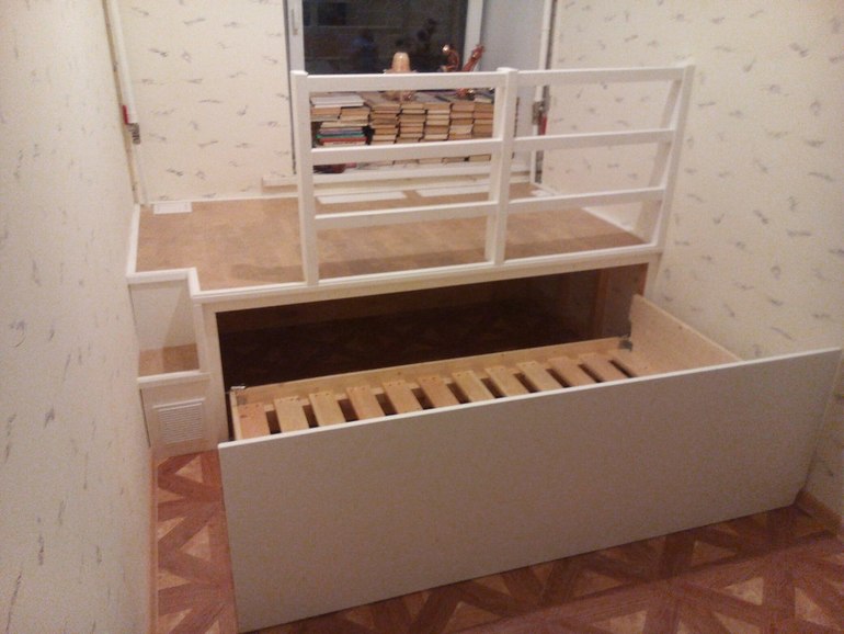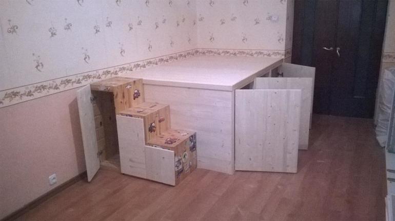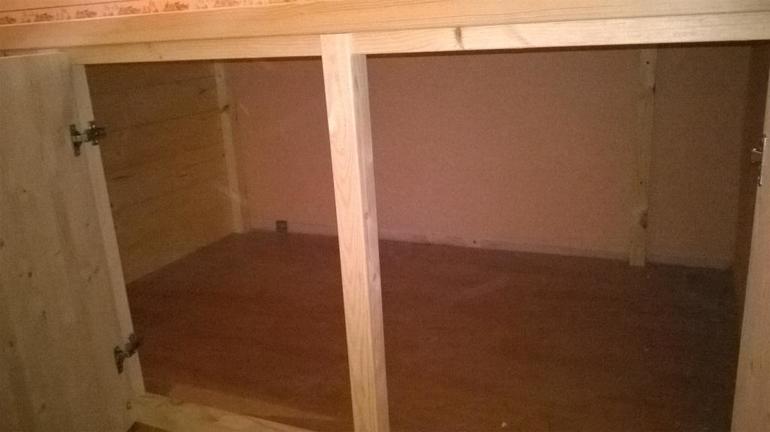 Есть такая идея шкафа. Только идея, конечно. Во-первых, он не может быть таким большим у меня. И меня смущают шкафы над головой. Т.е. рациональное использование пространства мне нравится, но как-то вопрос безопасности сего сооружения меня не покидает))