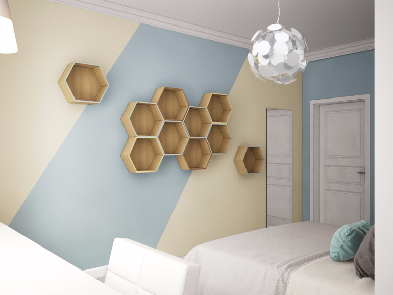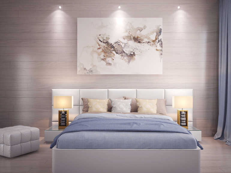 5. 11,6м2. Еще одна уютная спальня с декоративным коробом за изголовьем и на потолке. Ничего лишнего.