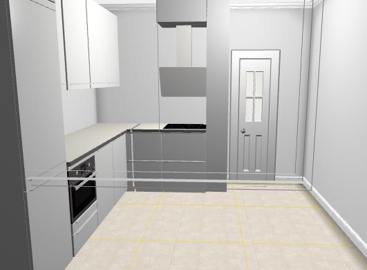 Итак, имеем почти квадратная кухня 3100*3200 и урезанный венткороб в доме п44.