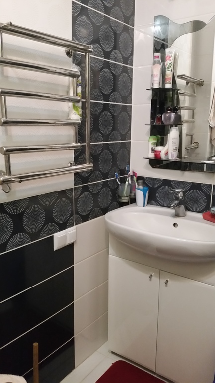 Прикольная раскладка в ванной, интересная. Если бы я нарисовала что-то похожее меня точно бы не поняли, может и не слушать тогда никого)))) В туалете только что рисовала точно такую же раскладку, только из другой плитки, не понравилось, удалила. А вживую норм смотрится. У Вас зеркало справа на одном уровне с раковиной? А то у меня будет также раковина от стены, а зеркало от стены повесить не получится, т.к. там полотенчик будет торчать и я не знаю какое зеркало купить чтобы было симметрично над раковиной. И, кстати, такого зеркала как у Вас нигде не встречала. Планирую со шкафчиком купить. Что плитка 60 вообще не скажешь. Даже с мужем поспорили ) А я 60 даже не рассматривала, хотя в туалет могла бы что-то приглядеть, но думала как там на коробе с инсталляцией ее размещать буду.