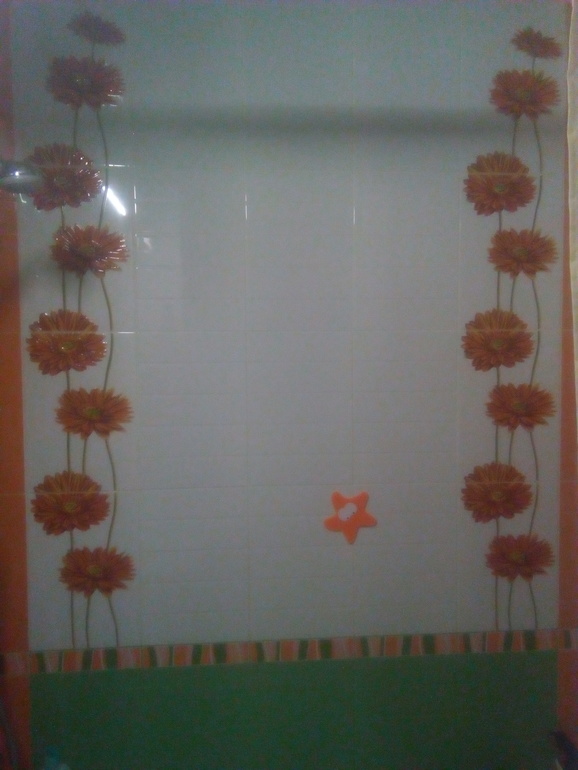 не поняла ))) я про верх нигде не пишу.. по стене над ванной выходит 3 ряда плитки по 50 см шириной. если смотреть на ванну, то левый - гладкая плитка, средний - декоры, правый - рельефная плитка, которая фактически также смотрится как декоры.