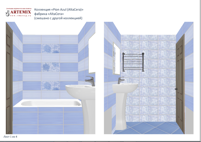 не совсем поняла " P.S. Уточняю, что экрана из плитки под ванной не будет." - т.е. плитки за ванной не будет или экрана из плитки у ванны не будет? 1. Если будет экран у ванны из плитки, а за самой ванной плитки не будет, то укладку по высоте следует начинать от бортика ванны (желательно). 2. на всех раскладках получается подрезка к потолку - очень тонкая полоса - ее лучше избежать. Можно пропустить бордюр где-то над ванной, если он есть в коллекции или даже воспользоваться потолочным карнизом. Это будет симпатичнее смотреться, чем такая подрезка. 3. Если отцентровать плитку по стене с раковиной и убрать плетенку? Не хочу еще большую путаницу вносить, но как я вижу, то это деление вертикальное еще более узкой делает стену с раковиной и создает не очень хорошую подрезку в углу у ванны, который хорошо просматривается. Вариант 3б можно преобразить и сделать нижние ряды темными, а полосу над ванной заменить плетенкой, либо отказаться от нее совсем. Варианты под номером 2 - одного декора мало по центру, 4а - тоже исключила бы.