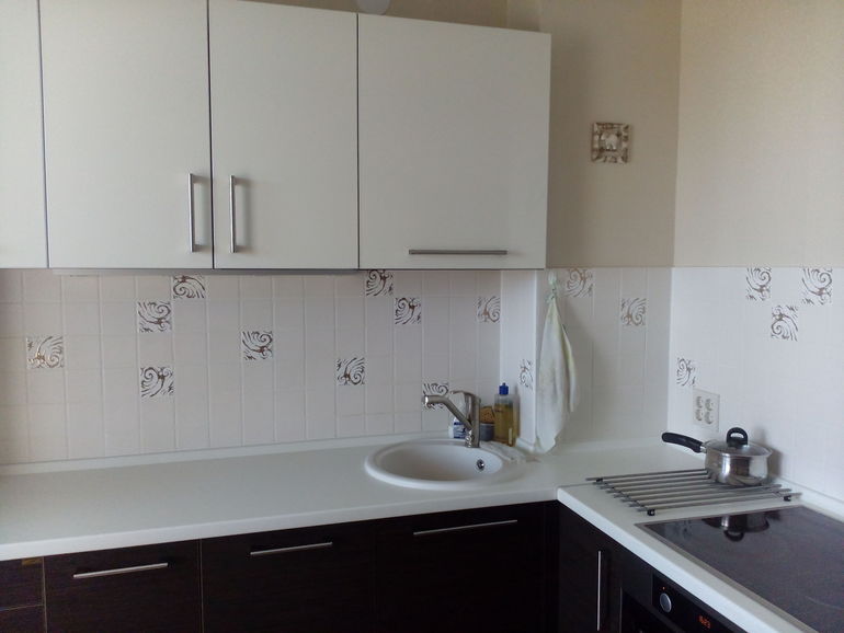 Сначала хотела покрасить белой матовой краской. Но так как расстояние от раковины и плиты до него 60 см с обоих сторон, он будет постоянно грязный (жир, вода, все дела).