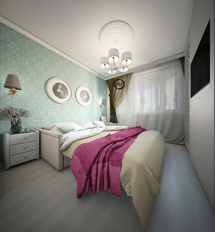 Спальня родителей будет служить одновременно и гостиной. Балкон, в данном варианте, послужил зоной relax, где можно посидеть вечером с чашечкой чая и почитать книжку.