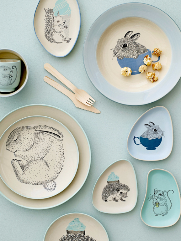 Я нашла в нете посуду с зайчиками. Ну ладно, кружки по 500-800 р... Но тарелки за 2000 штучка((( Надо на ебее посмотреть или по знакомым во "вражьих странах" пошукать.